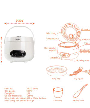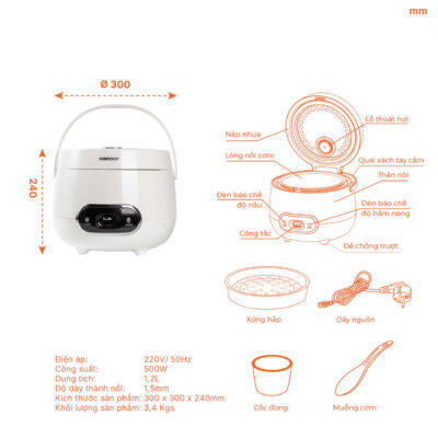 •  Công suất 500W, giúp cơm chín đều, tiết kiệm điện.