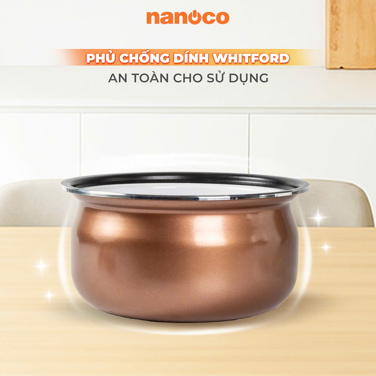 •  Ruột nồi dày 1.5mm, phủ chống dính Whitford, an toàn cho sức khỏe.