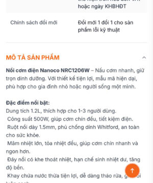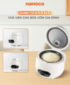 Nồi cơm điện Nanoco NRC1206W – Nấu cơm nhanh, giữ trọn dinh dưỡng. Với thiết kế tiện lợi, mẫu mã hiện dại, phù hợp cho gia đình nhỏ hoặc người sống một mình.